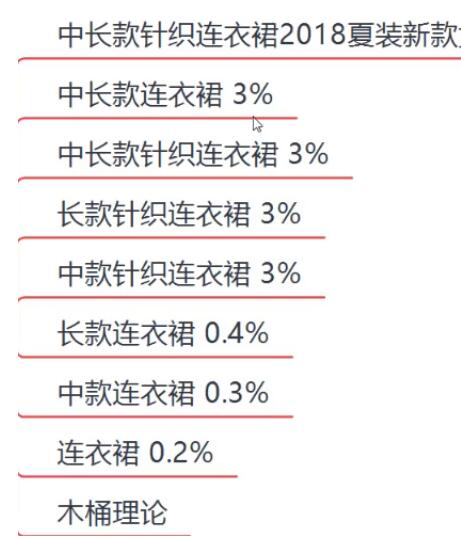 從關鍵詞轉化優(yōu)化的過程分析,我們看下面這個標題:中長款針織連衣裙2018夏裝新款女裙短袖條紋打底裙韓版女裝裙顯瘦。從她的詞上面可以拆分: