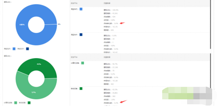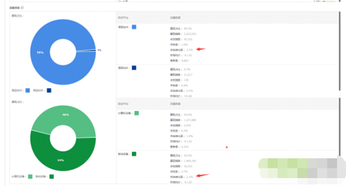 流量解析工具里面主要看兩個(gè)指標(biāo):一個(gè)是淘寶站內(nèi)的支付轉(zhuǎn)化率為2.2%,一個(gè)是移動(dòng)設(shè)備端的支付轉(zhuǎn)化率也是2.2%,所以我們可以確定我們詳情頁轉(zhuǎn)化率的標(biāo)準(zhǔn)為2.2%。