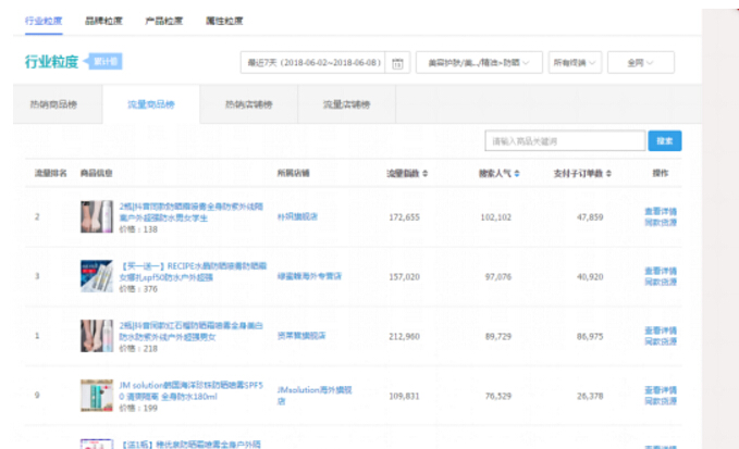 手淘搜索流量高的寶貝應(yīng)該怎么看呢?工具是生意參謀專業(yè)版-市場-商品店鋪榜-流量商品榜-按照搜索人氣排序。