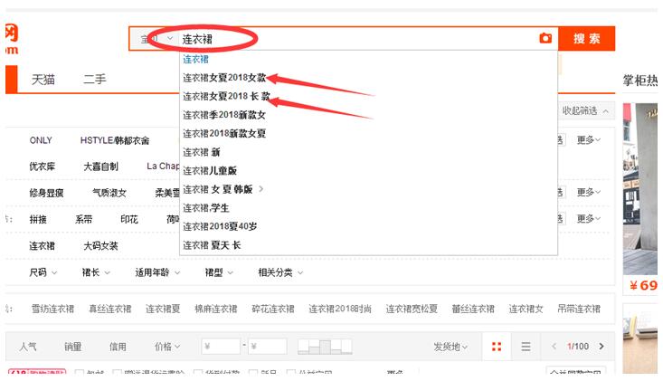 我們依然搜索連衣裙,后面會出現(xiàn)“連衣裙女夏2018女款”這樣的詞語也是我們在做標題優(yōu)化時可用到的詞語。更全面的標題優(yōu)化方法,小編會在今后的文章中給大家詳細介紹。