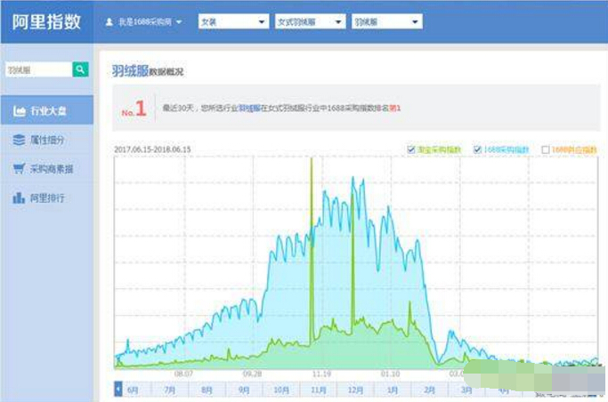 我們還是拿案例說事吧:現(xiàn)在正值夏季,所以夏款肯定是在如火如荼的熱賣,現(xiàn)在來選夏季的款肯定不是時(shí)候,我們來看下冬天羽絨服怎么選?這個(gè)可以通過阿里指數(shù)來看全年的采購指數(shù)。阿里巴巴作為眾多中小賣家的采購平臺(tái),可以為選款提供很好的數(shù)據(jù)參考。