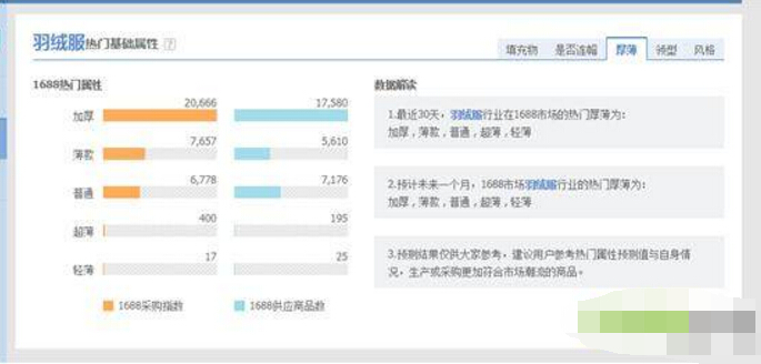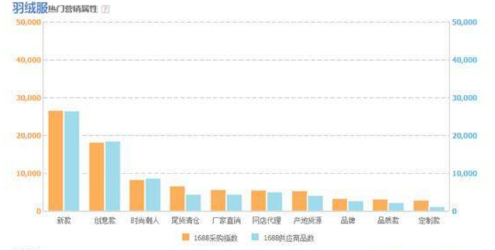 通過阿里指數(shù)熱門采購屬性,也可以分析出產(chǎn)品的趨勢(shì),如下圖,就可以看出,新款、時(shí)尚潮人、加厚,連帽,等等都是熱門的屬性!是不是覺得對(duì)自己選款的初步定位和款式方向有了呢?