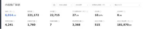 上面這張就是近30天以來內(nèi)容化推廣的數(shù)據(jù)反饋。