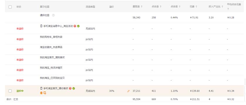 原來因?yàn)橹挥腥齻€位置所以競爭還是很激烈的,這就造成了不出高價就獲取不到這部分流量的尷尬局面。而現(xiàn)在展現(xiàn)量與之前相比提升了4—5倍,位置的增加就意味著我們可以不用出高價也能拿到這部分流量,獲得讓淘寶系統(tǒng)注意到我們的機(jī)會。因?yàn)樵黾拥奈恢枚际呛笈诺?,所以競爭也會相對少了很多點(diǎn)擊單價也會變低很多。