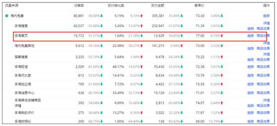 尤其是搜索進(jìn)店流量和直通車(chē)進(jìn)店流量,這種不精準(zhǔn)會(huì)直接導(dǎo)致轉(zhuǎn)化率下滑,并且伴隨的還有頁(yè)面停留時(shí)間短、跳失率高等表現(xiàn)。并且這種不精準(zhǔn),主要是進(jìn)店關(guān)鍵詞不精準(zhǔn),你可以在生意參謀——商品——商品分析——單品分析中進(jìn)行分析,看最近30天的無(wú)線端數(shù)據(jù),在手淘搜索那一項(xiàng),點(diǎn)擊“詳情”,可以看一下進(jìn)店關(guān)鍵詞的表現(xiàn)