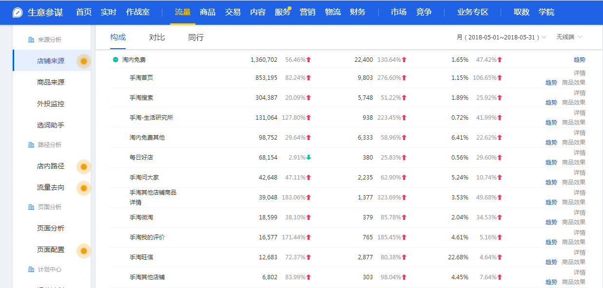 這是剛接到的一個美妝店鋪當時淘內(nèi)免費流量情況,這里只摘取關(guān)鍵的幾個流量入口。