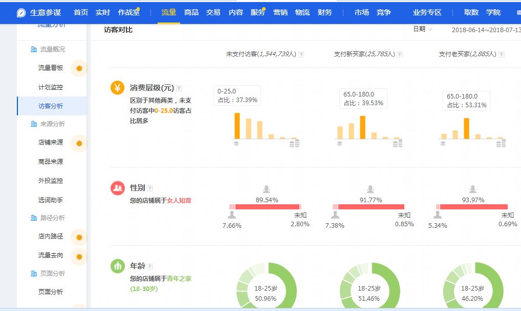 其次是分析人群(之前的干貨有講過如何分析),分析過后可根據(jù)店鋪人群做適合店鋪的運營方案,比如直通車方面:可把這類客戶人群作為精選人群進行測試;會員方面:定期贈送優(yōu)惠或者適合這類人群喜愛的產(chǎn)品;微淘方面:針對這類人群可發(fā)布比較年輕化的內(nèi)容,增加客戶粘性等等。