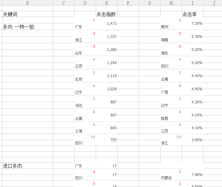 5. 地域篩選出優(yōu)質(zhì)關(guān)鍵詞的共同高點(diǎn)擊指數(shù)和高點(diǎn)擊率的共同地域5—10個(gè)。
