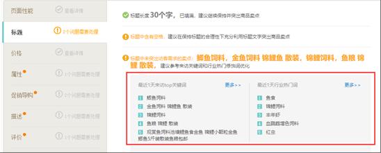 比如這個寶貝當中,我們大家看一下最近1天的進店關(guān)鍵詞排序,發(fā)現(xiàn)“金魚飼料”和“錦鯉飼料”這兩個詞出現(xiàn)的頻率很高,那意味著什么?意味著這是好詞啊,所以你如果想通過直通車計劃拉權(quán)重的話,就要把精力集中在這兩個屬性詞上,而不是其他的,如果你做一個廣泛匹配,或者主要精力在其他詞上,你會發(fā)現(xiàn)這種拉動效果就要差很多,很多時候甚至是反作用。