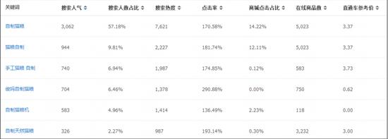 你可以打開“搜索詞查詢”,然后輸入:貓糧自制,在相關(guān)搜索詞里面去看一下: