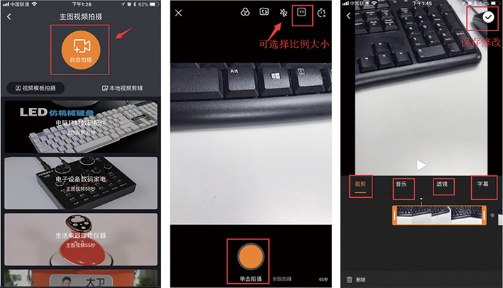 1. 視頻比例可以選擇3:4,1:1或者16:9,可以根據(jù)產(chǎn)品情況來進(jìn)行調(diào)整,如果是服裝,需要展示模特整體效果可以選擇3:4,如果是小物件,比如說小玩具,正方形的比例更容易突出主體,我們可以選擇1:1,如果需要大場景的,可以選擇16:9的尺寸。
