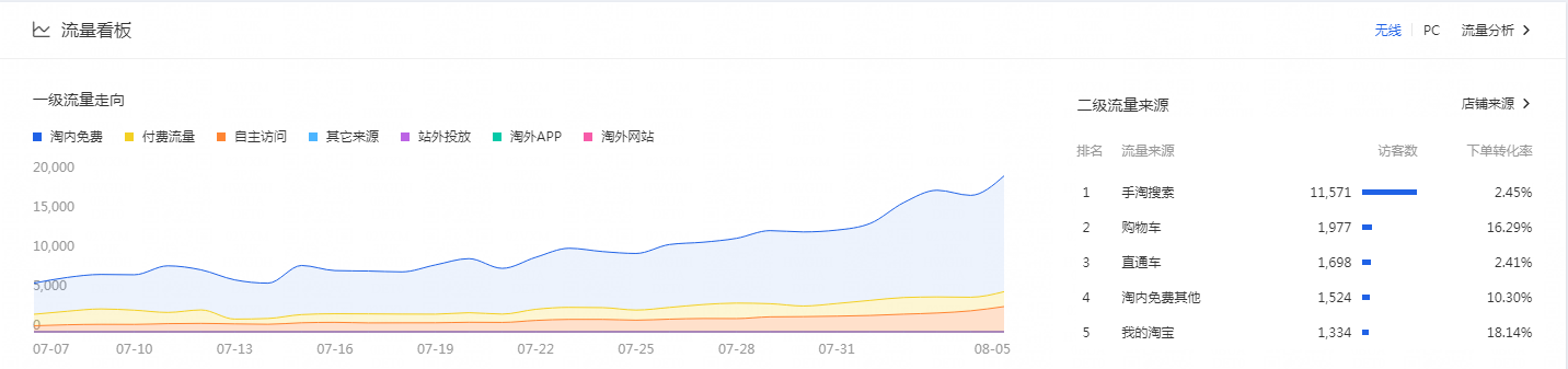 在日常店鋪的運(yùn)營(yíng)維護(hù)中引流是我們的核心目的,有流量才能形成成交,店鋪流量可以大致分為免費(fèi)流量和付費(fèi)流量,免費(fèi)流量中以免費(fèi)搜索流量、首頁(yè)流量、淘內(nèi)免費(fèi)其他、手淘問(wèn)大家等流量為主,而付費(fèi)流量就是通過(guò)付費(fèi)工具所引導(dǎo)的流量,有預(yù)算可控流量大小渠道人群可控等特點(diǎn),主要流量來(lái)源有直通車流量、鉆展流量、淘客流量等。