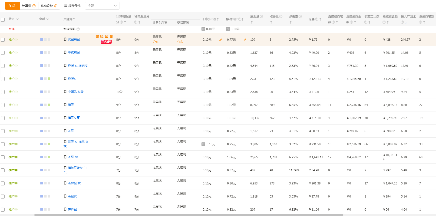 觀察7-14天的數(shù)據(jù),進行優(yōu)化,成交詞留下,花費多沒轉(zhuǎn)化的刪除。經(jīng)過一段時間的積累,有了數(shù)據(jù)支撐,我們就需要進一步的對關(guān)鍵詞的引流能力來進行挑選,通過流量解析我們能夠看到,你需要留下和刪除的關(guān)鍵詞是哪些,與此同時你還需要進行添加新的關(guān)鍵詞。如果你的產(chǎn)品足夠好,需要更多的流量,那么這時候就可以添加流量大的大詞了。